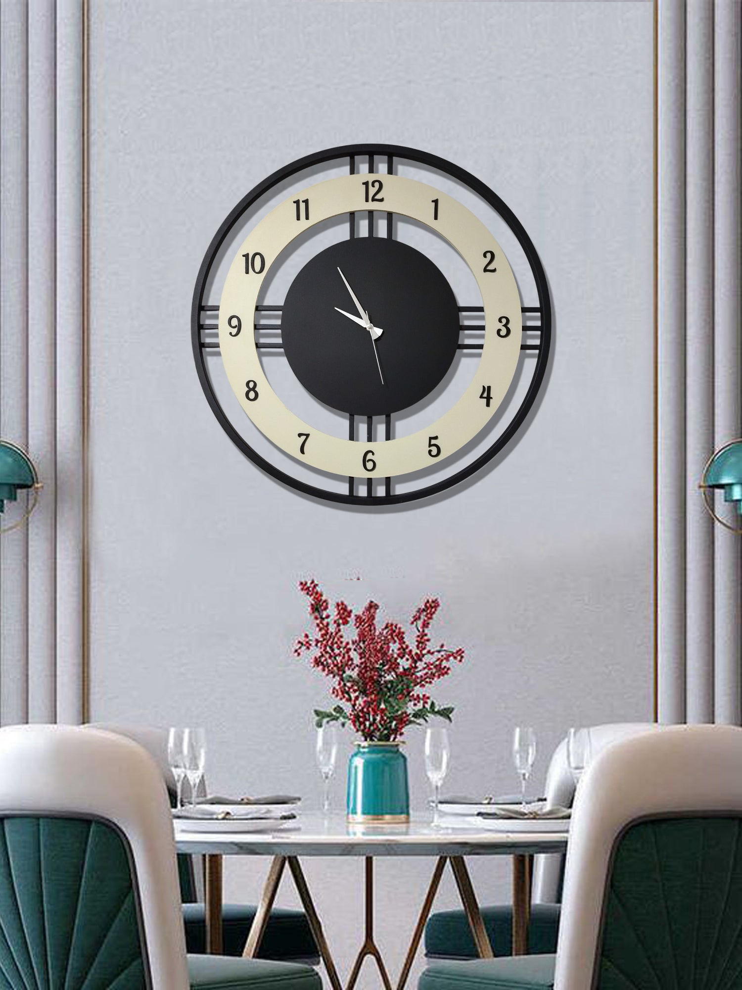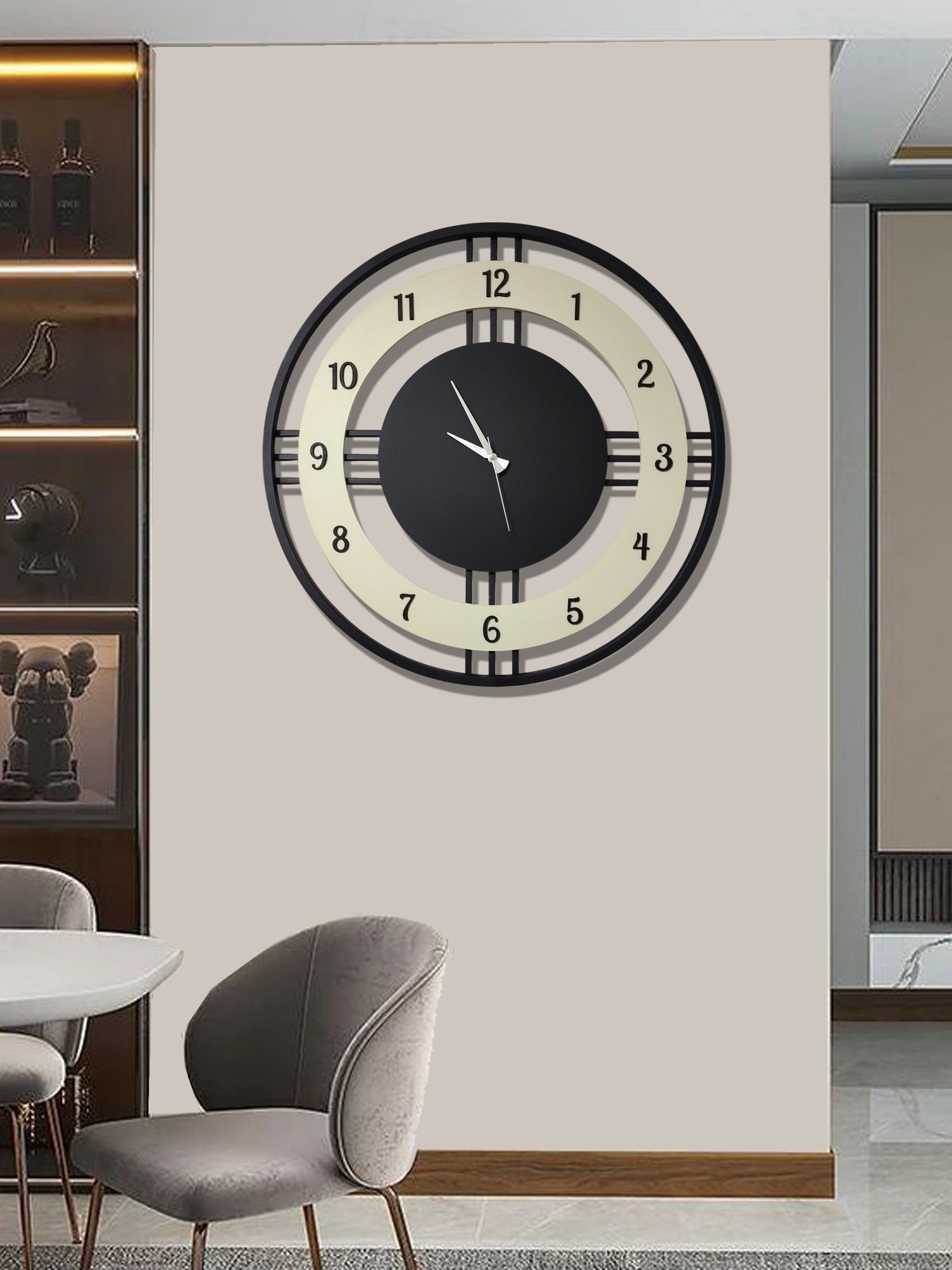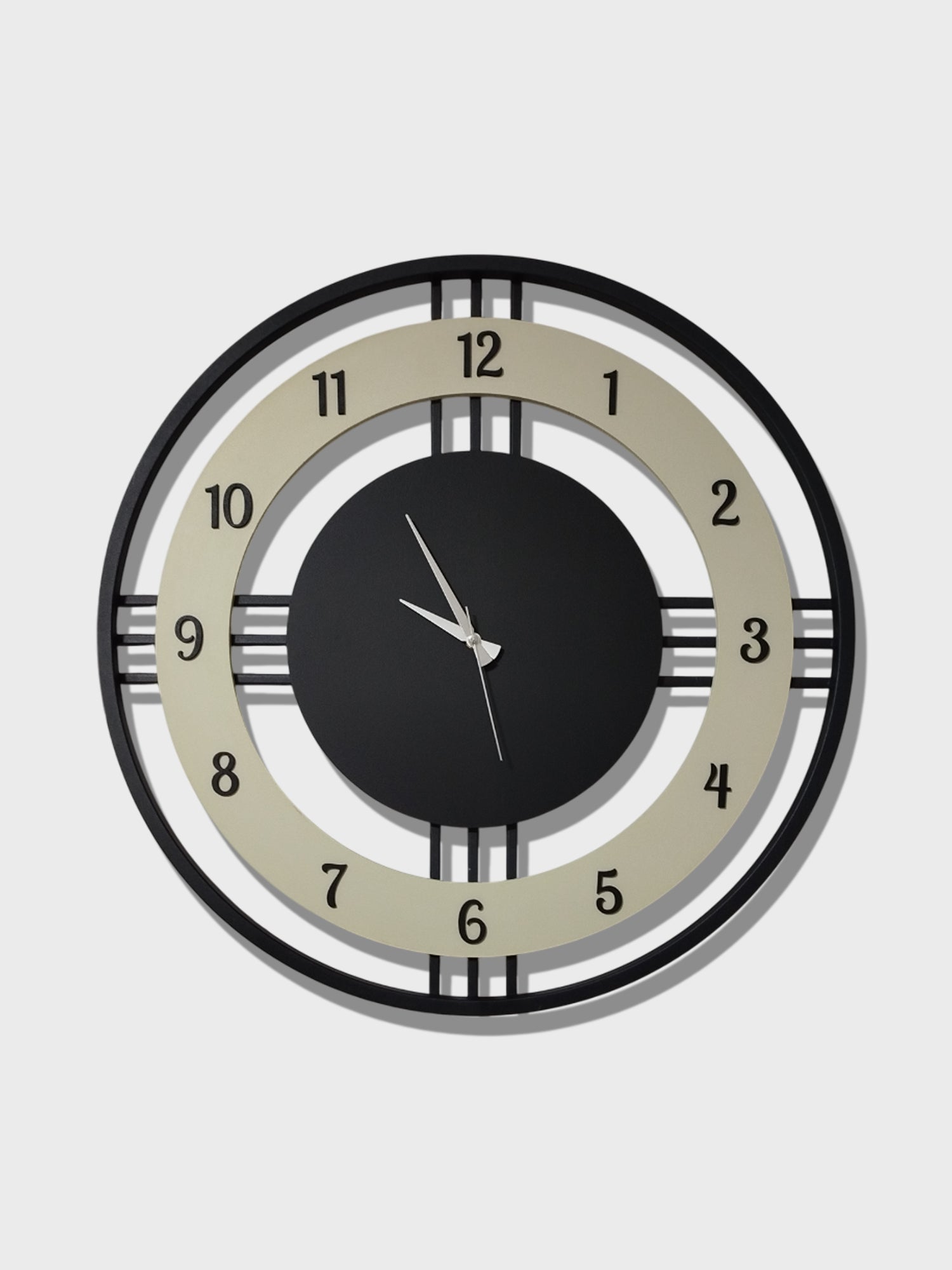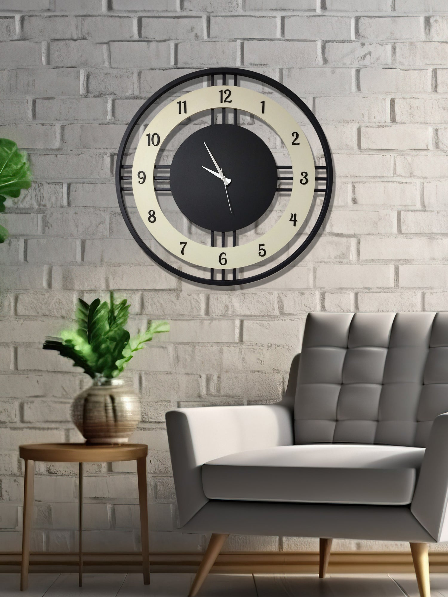 Alfix Metal Ahşap Duvar Saati Siyah – Büyük ve Şık Tasarım