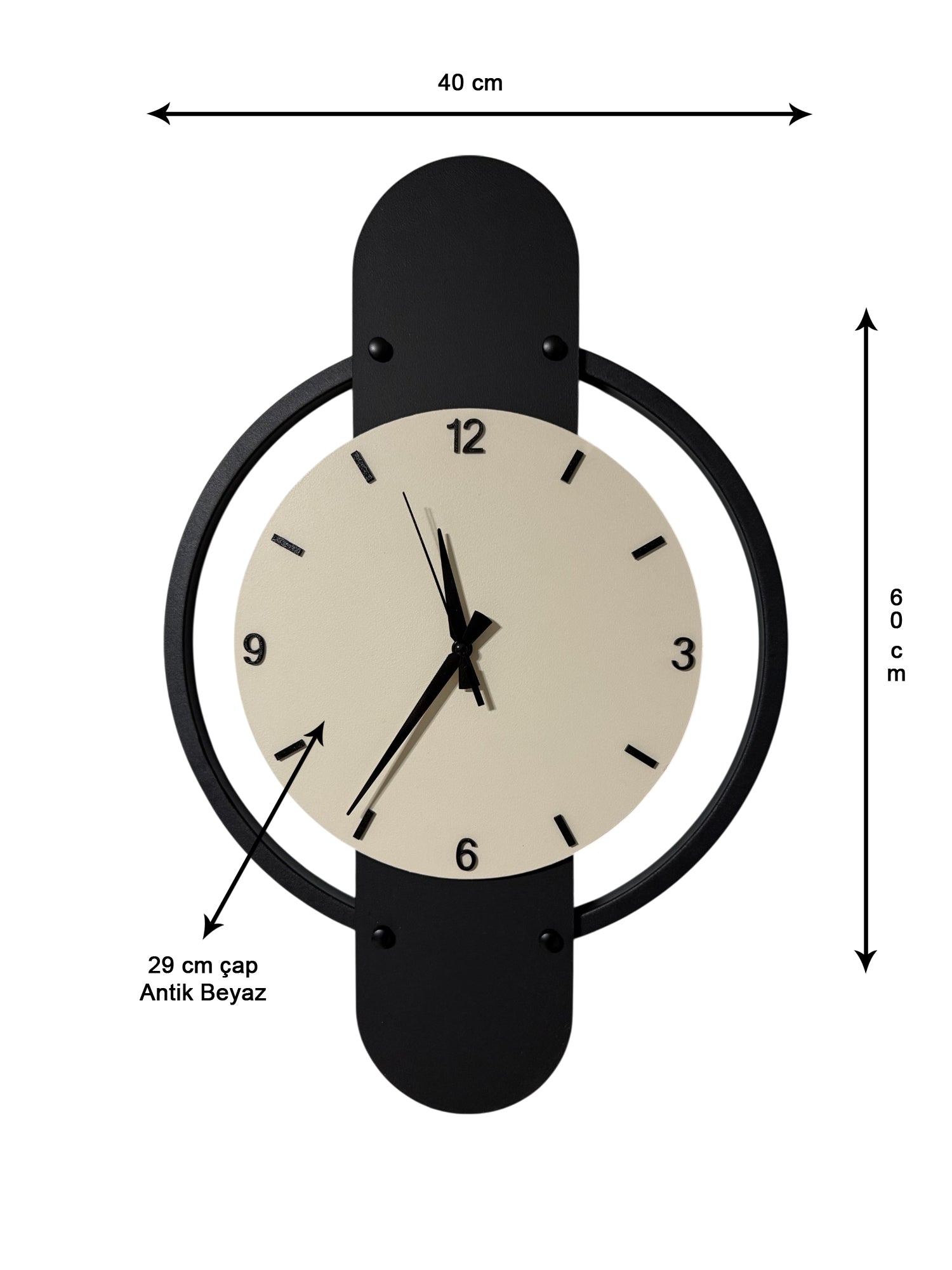 Arya Metal Duvar Saati – 40 x 60 cm | Siyah & Antik Beyaz