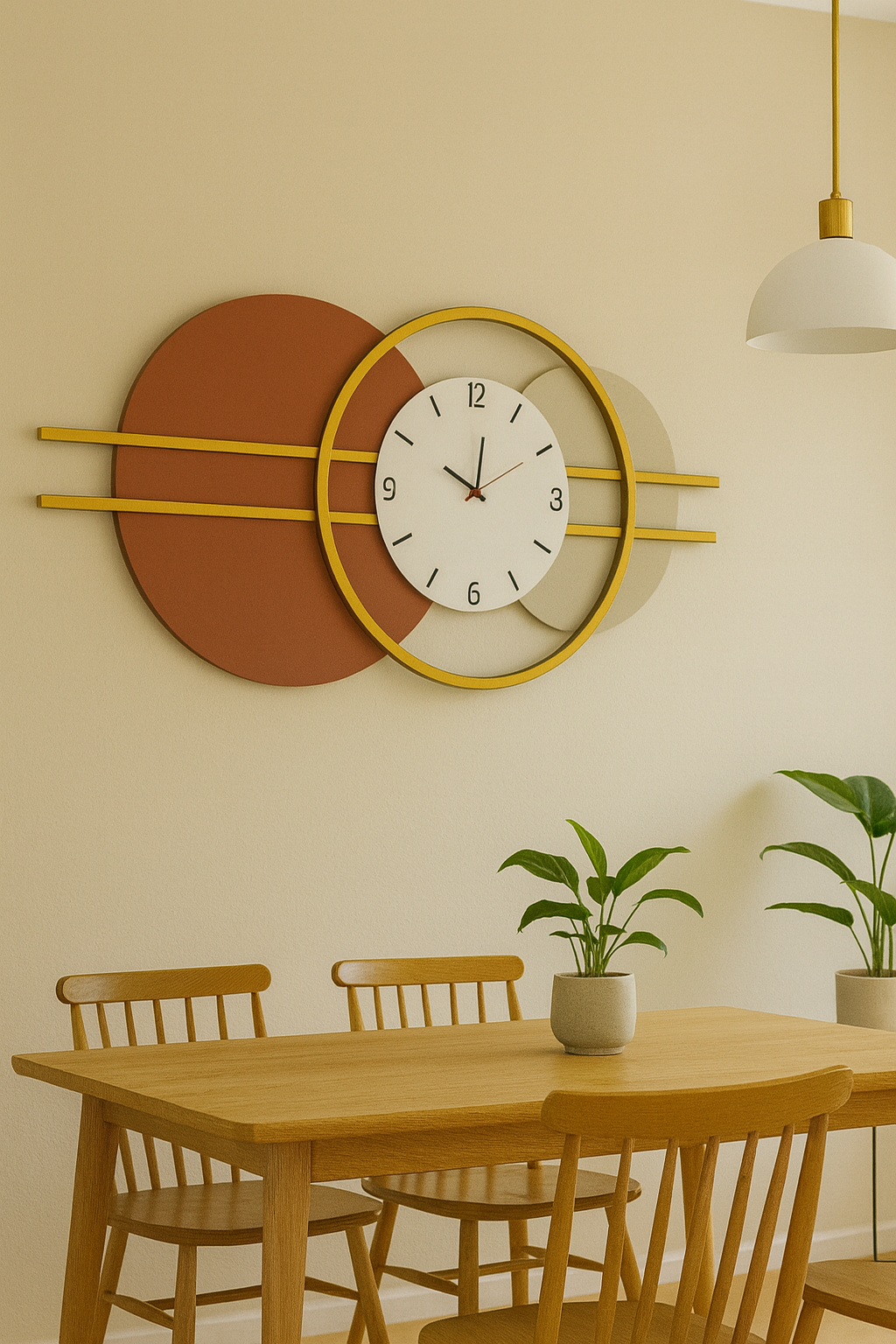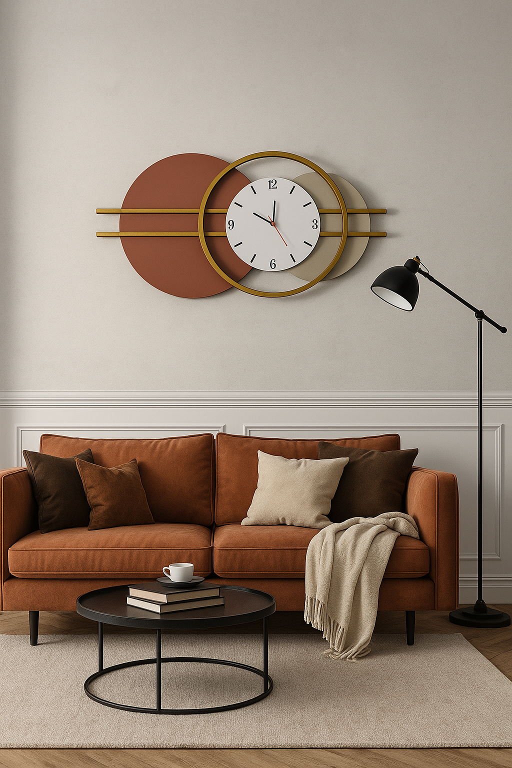 Ev dekorasyonunda fark yaratan detaylardan biri de şüphesiz şık bir duvar saati seçimidir. Garnet Metal Ahşap Duvar Saati Kiremit, modern ve dekoratif tasarımıyla sadece zamanı göstermekle kalmaz, aynı zamanda bulunduğu mekâna estetik bir değer katar. Kiremit, krem ve kirli beyaz tonlarının uyumu; altın çerçeve detaylarıyla birleşerek göz alıcı bir görünüm oluşturur.