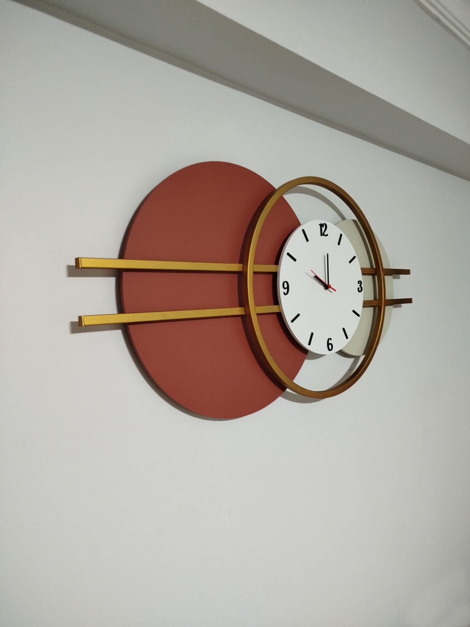 Garnet Metal Ahşap Duvar Saati Kiremit – Sanatsal ve Modern Tasarım