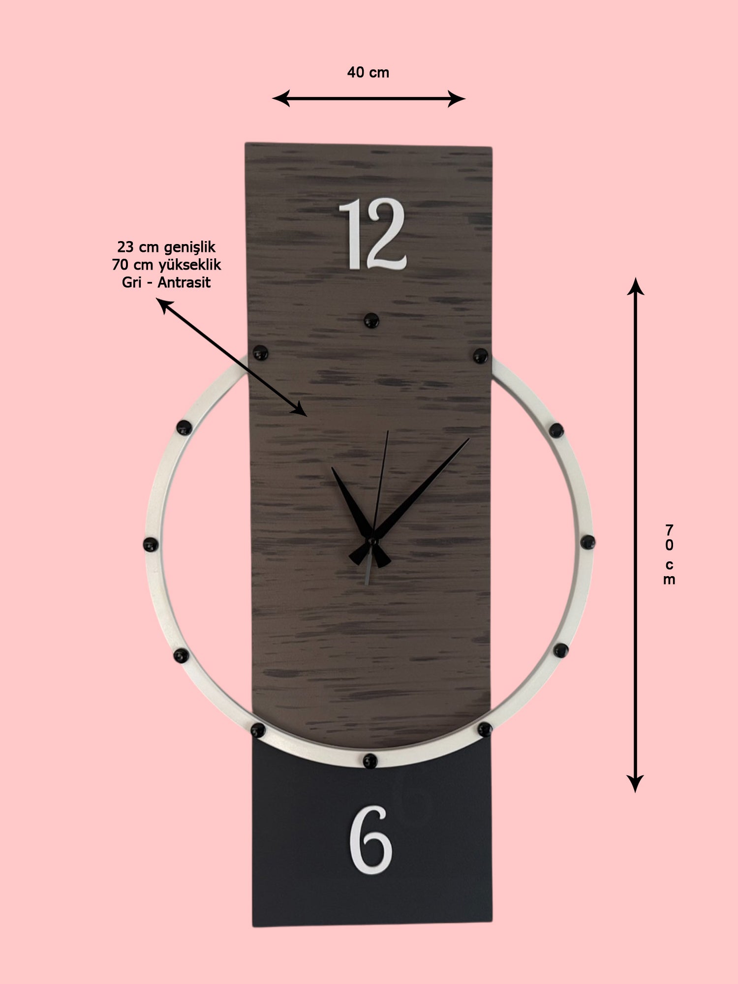 Sade ama dikkat çekici çizgilere sahip Lotto Metal Ahşap Duvar Saati, siyah, gri ve beyazın kontrastıyla modern mekanlarda şık bir atmosfer oluşturur. 40×70 cm ölçüleriyle dikey tasarımı öne çıkarırken, metal profil çerçevesi ve kaliteli MDF yüzeyi ile dayanıklılığı ve estetiği bir araya getirir. Sessiz, akar saniyeli mekanizması ise huzurlu yaşam alanları için ideal.