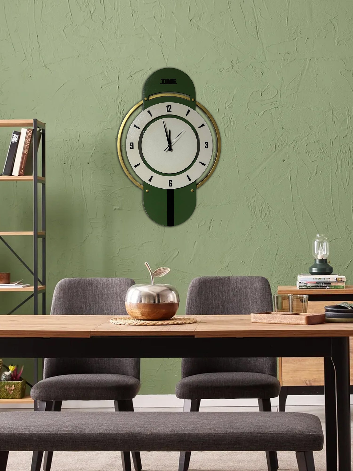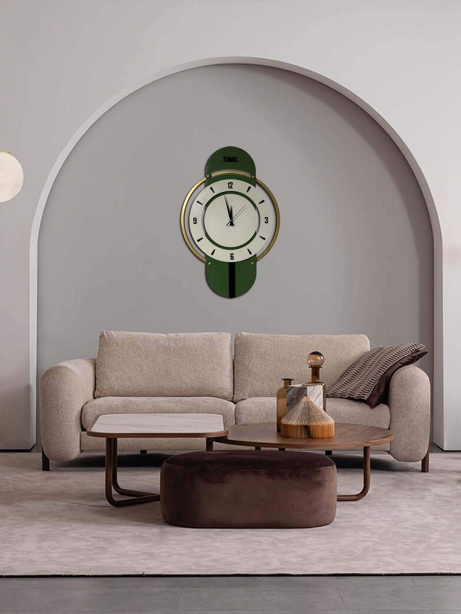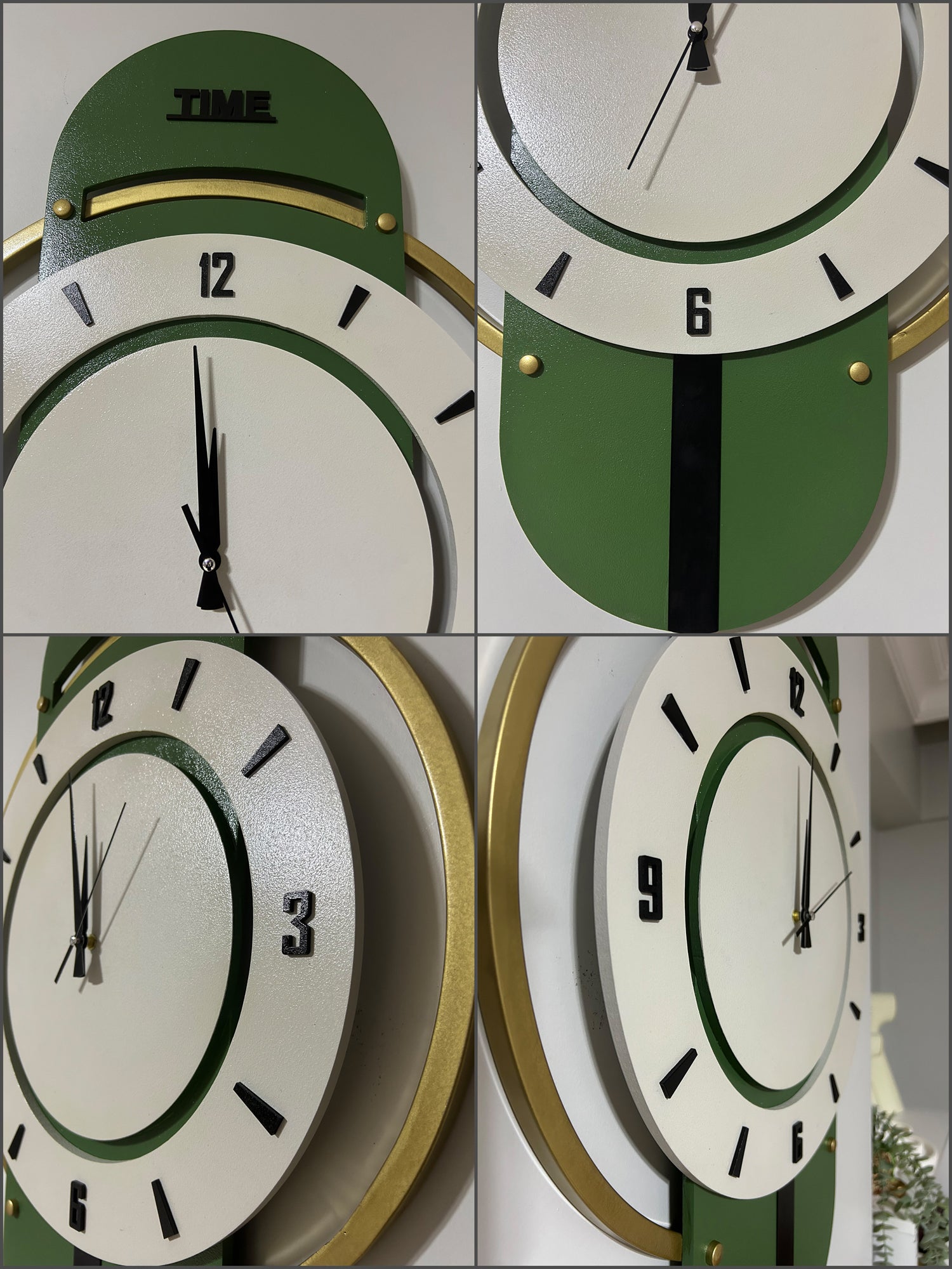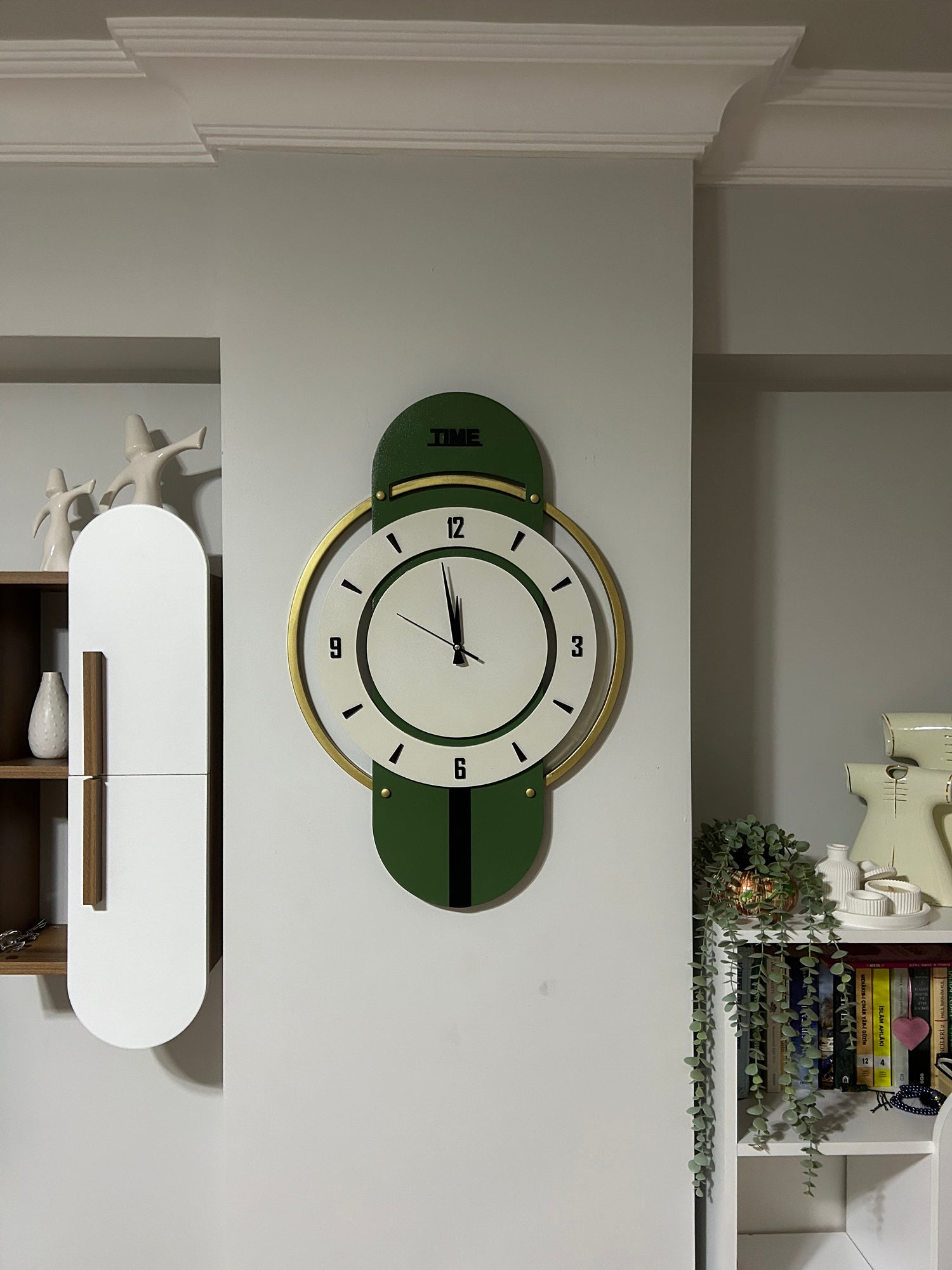 Sade çizgileri ve modern renk geçişleriyle öne çıkan Upsilon Duvar Saati, yeşil, siyah ve altın tonlarının uyumu sayesinde hem klasik hem çağdaş dekorasyonlara sofistike bir dokunuş kazandırır. 50 × 75 cm’lik dikey formu, dar duvarlarda bile tablo etkisi yaratırken sessiz, akar saniyeli mekanizmasıyla huzurlu bir ortam sunar. 8 mm MDF gövde ve güçlü metal profil çerçeve, ürüne uzun ömür ve sağlamlık katar.