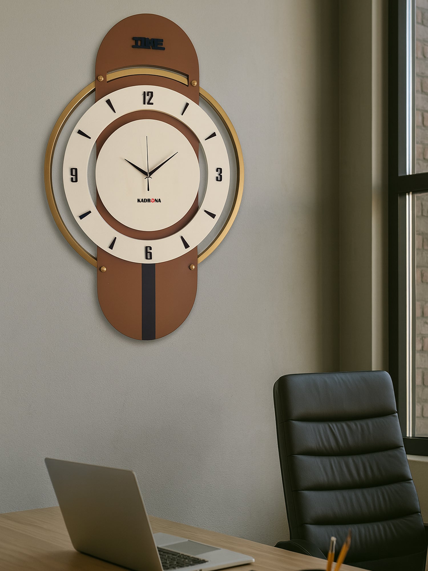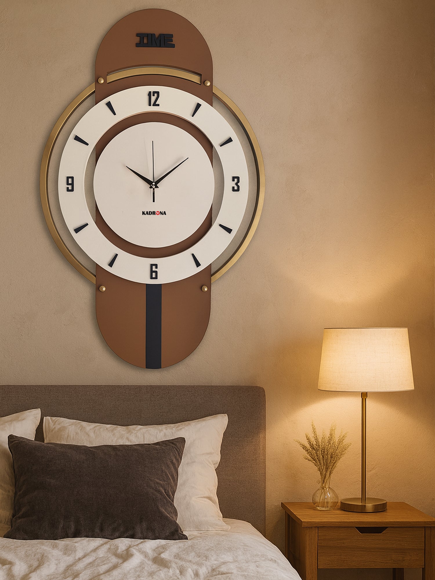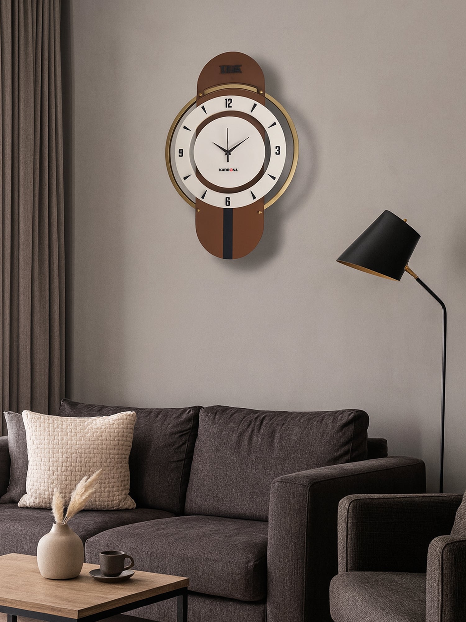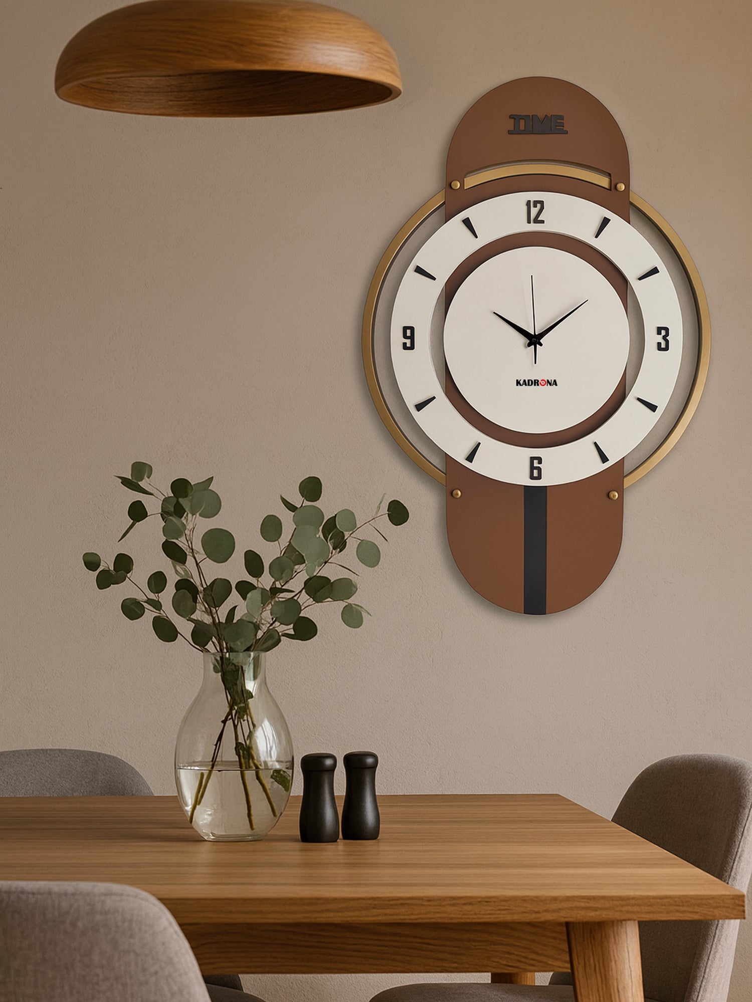 Ev dekorasyonunda estetik bir tamamlayıcı arıyorsanız, Upsilon Duvar Saati Kahve şıklığı ve işlevselliği bir arada sunar. Modern çizgilere sahip tasarımı, kahverengi, kirli beyaz ve gold renk uyumuyla bulunduğu mekâna sofistike bir hava katar. Sessiz çalışan mekanizması sayesinde dikkat dağıtmadan zamanı takip etmenizi sağlar.