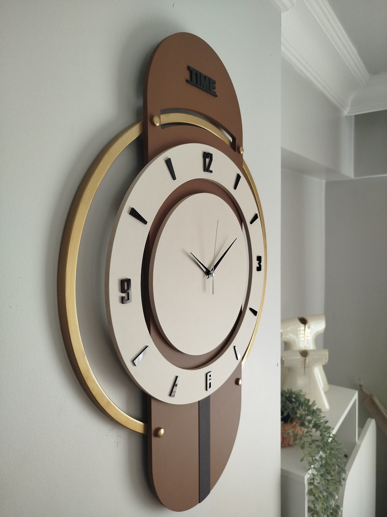Upsilon Duvar Saati Kahve, yalnızca zamanı göstermekle kalmaz; aynı zamanda dekorasyonun merkezinde şıklığıyla öne çıkar. Eğer siz de büyük duvar saati, modern duvar saati veya sessiz dekoratif duvar saati arıyorsanız, bu tasarım tam size göre.
